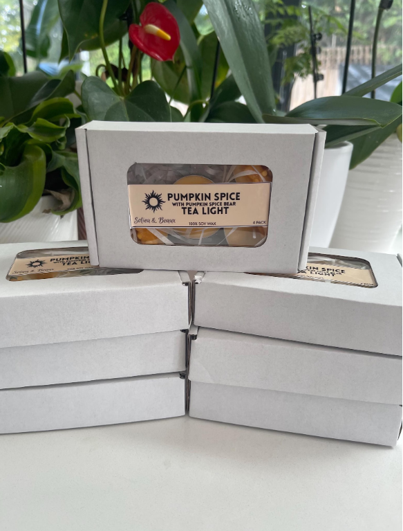 Pumpkin Spice Soy Tea Lights with Bear on top – 4 Pack